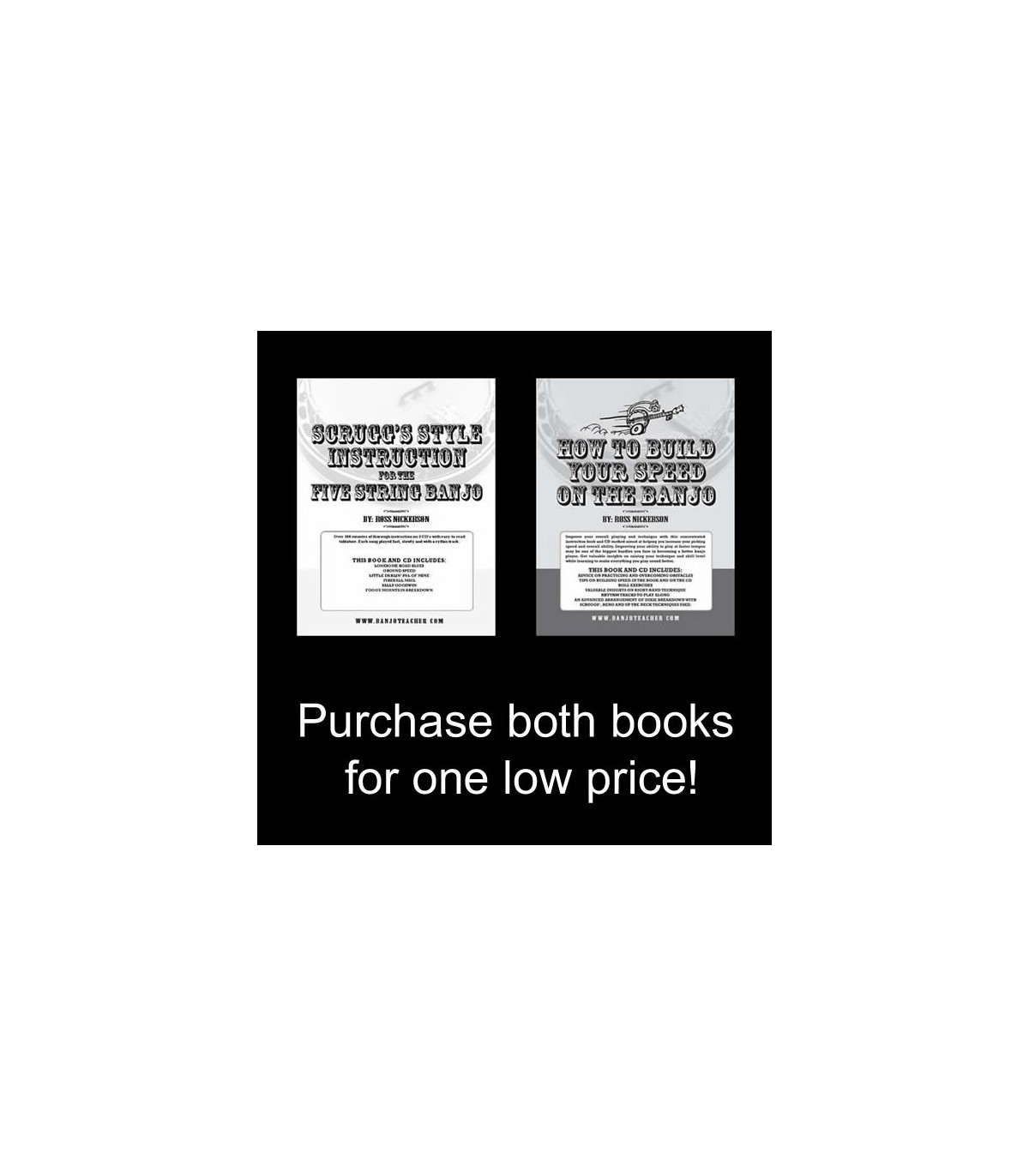 The regular price for these each book is 19.95. Here you can purchase both How to Build Your Speed on the Banjo and Scruggs Style Instruction for 5 String Banjo for only 29.95 AND receive FREE US Shipping.