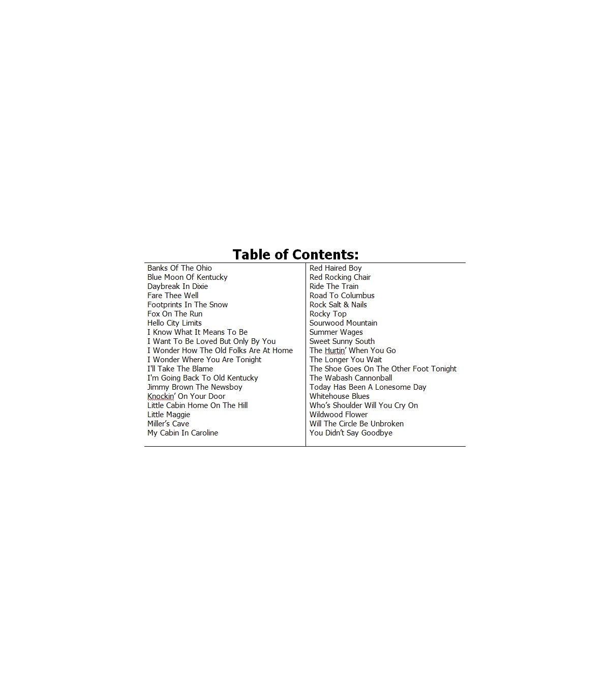 Improvised JD Crowe breaks and solos tabbed out by Russell Sawler with complete accuracy and approved by JD Crowe. These are JD Crowe banjo breaks tabbed out from live shows. This second tab book, Volume 2 features examples of J.D.'s playing in open F, D and C.