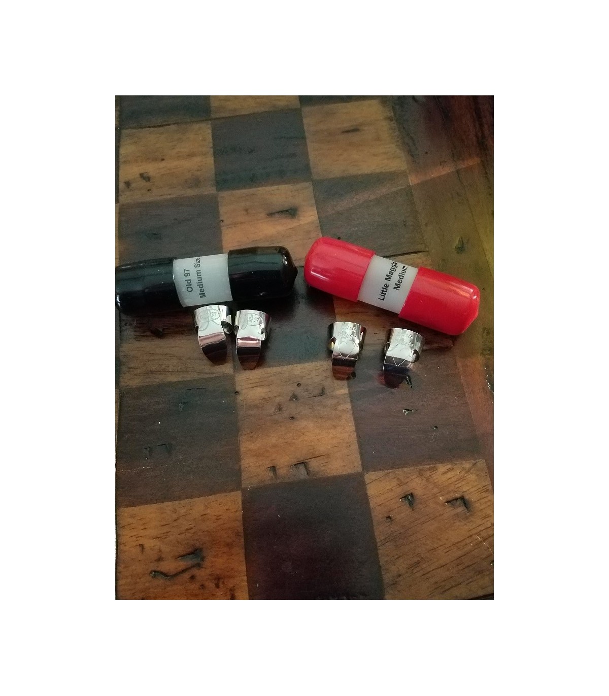 Little Maggie "Old 97" Banjo Fingerpicks are individually polished and each one is formed by hand. The blade length takes the stress out of picking by adding strength and volume to each stroke. The solid band makes for a comfortable fit.