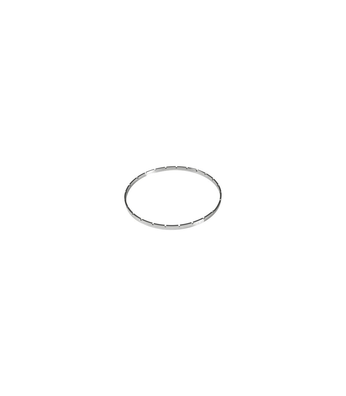 A re-issue of the original, crenellated 1930s banjo tension hoop with 24 notches. Nickel-plated brass