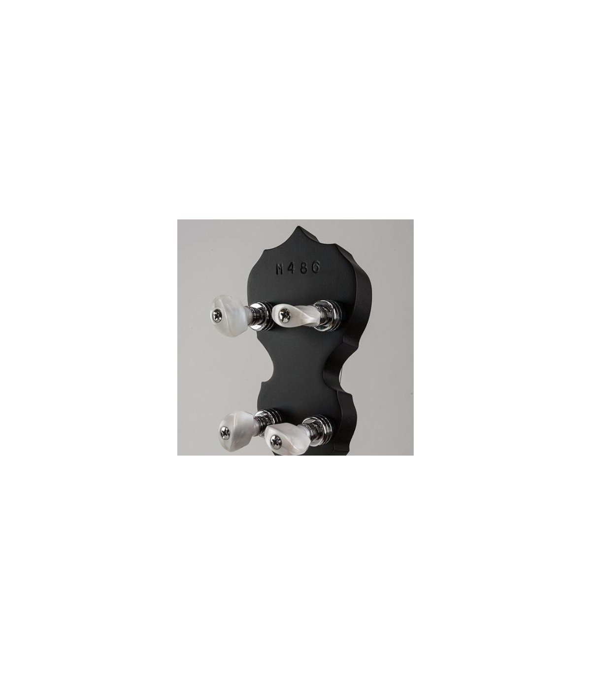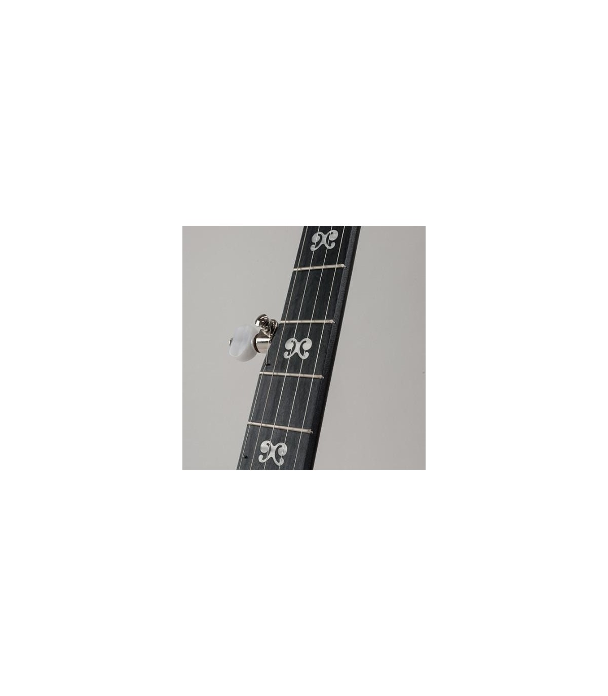 A black & white stand alone banjo with a modern look, the Midnight Special is the pinnacle of the Goodtime line. Updated for 2016, the Midnight Special now features the same Midnight Maple fingerboard, inlay pattern and engraved peg head that was introduced on the Artisan banjos.
