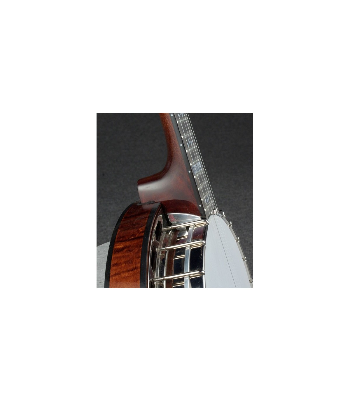 The Nechville Flex Tone has a traditional Gibson Mastertone Style pot with flathead tone ring, 3-ply maple rim and one piece flange. This is different from the non traditional Tom Nechville helimount system design on most of their banjos.