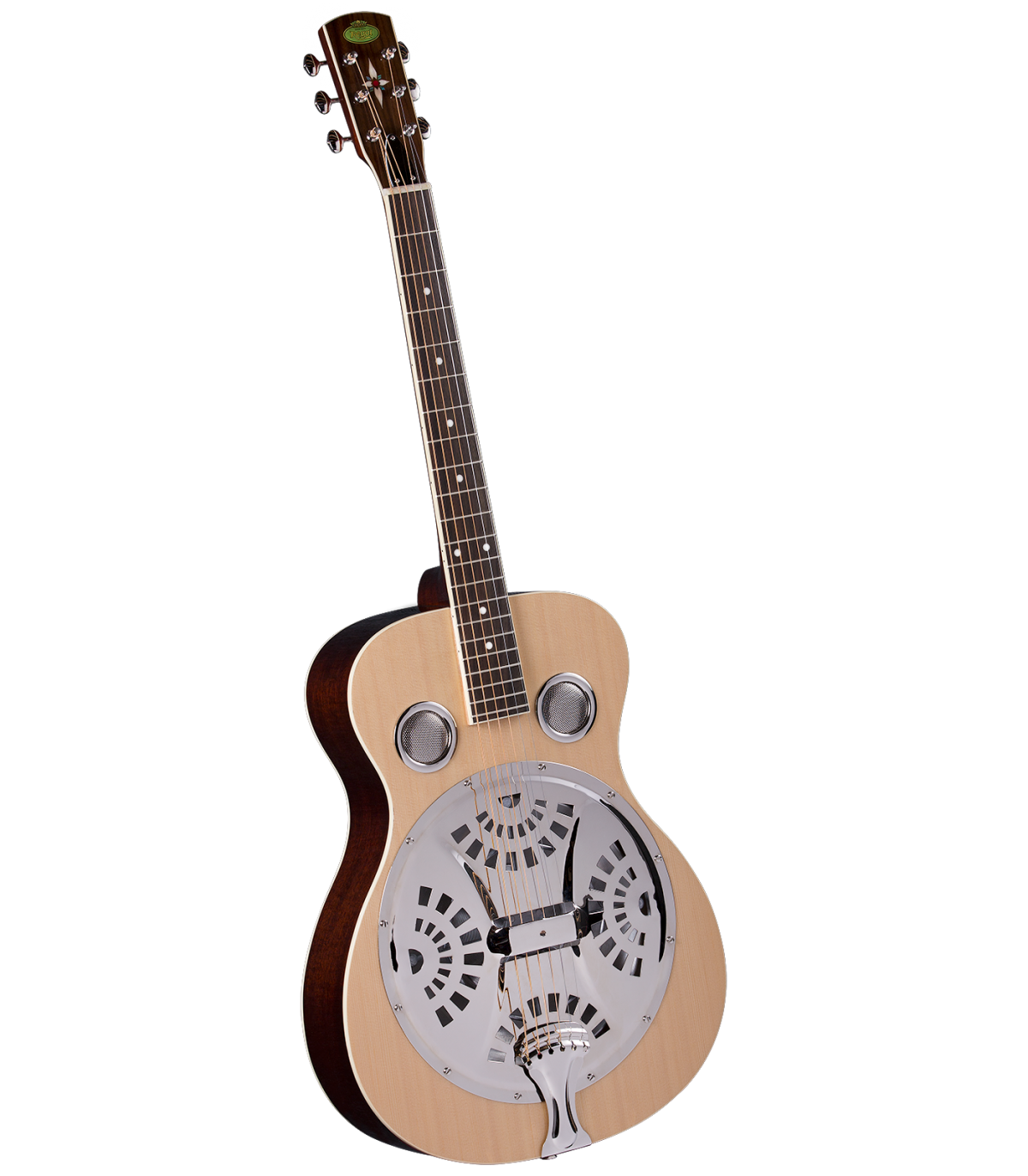 At the top of the line of our Regal Studio Series Resophonic Guitars, the new and improved RD-40 has been redesigned from the inside out making it the best value when it comes to truly vintage-inspired, professional featured, resophonic instruments available. Using our many years of experience in the development and construction of traditional American acoustic instruments, we have also discovered ways to improve upon the most legendary designs from the past without pricing them out of the reach of any level player. Only the finest materials are used to create these new designs that reminisce of the past, while still meeting the demands of today's modern players. The new body shape takes its cues from instruments of the past; while the real secret to the tone of these instruments lies within. It all starts with a combination of Regal exclusives such as the patented Power Reflex Tone Chamber for added volume, the patented DP-126 Die-cast spider for its bell like response, and a US-made, hand-spun aluminum cone. All together work in perfect harmony to assure the maximum, most articulate tone that can be heard in any playing situation.