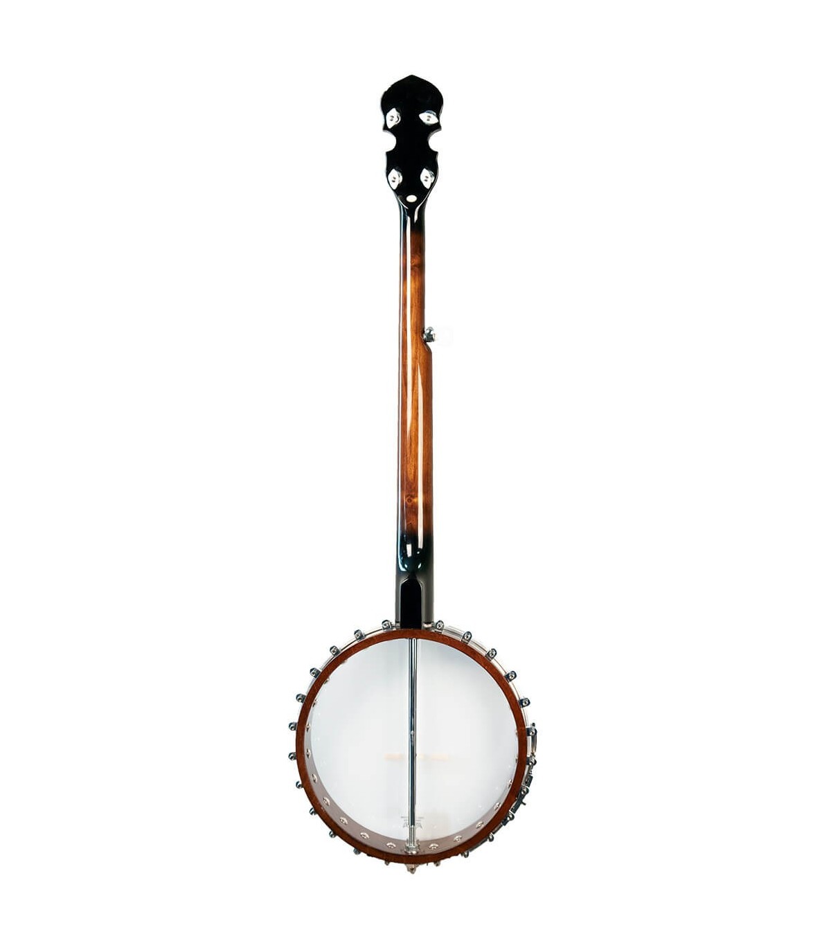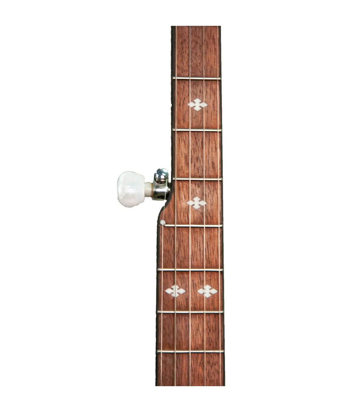 It's features include maple neck and body, double coordinator rods, curly maple headstock veneer, Straight Line tailpiece, brass tone ring, 2 way adjustable truss rod, and low action for the beginning banjoist. It also comes standard with planetary tuning pegs. Available as a lefty too.