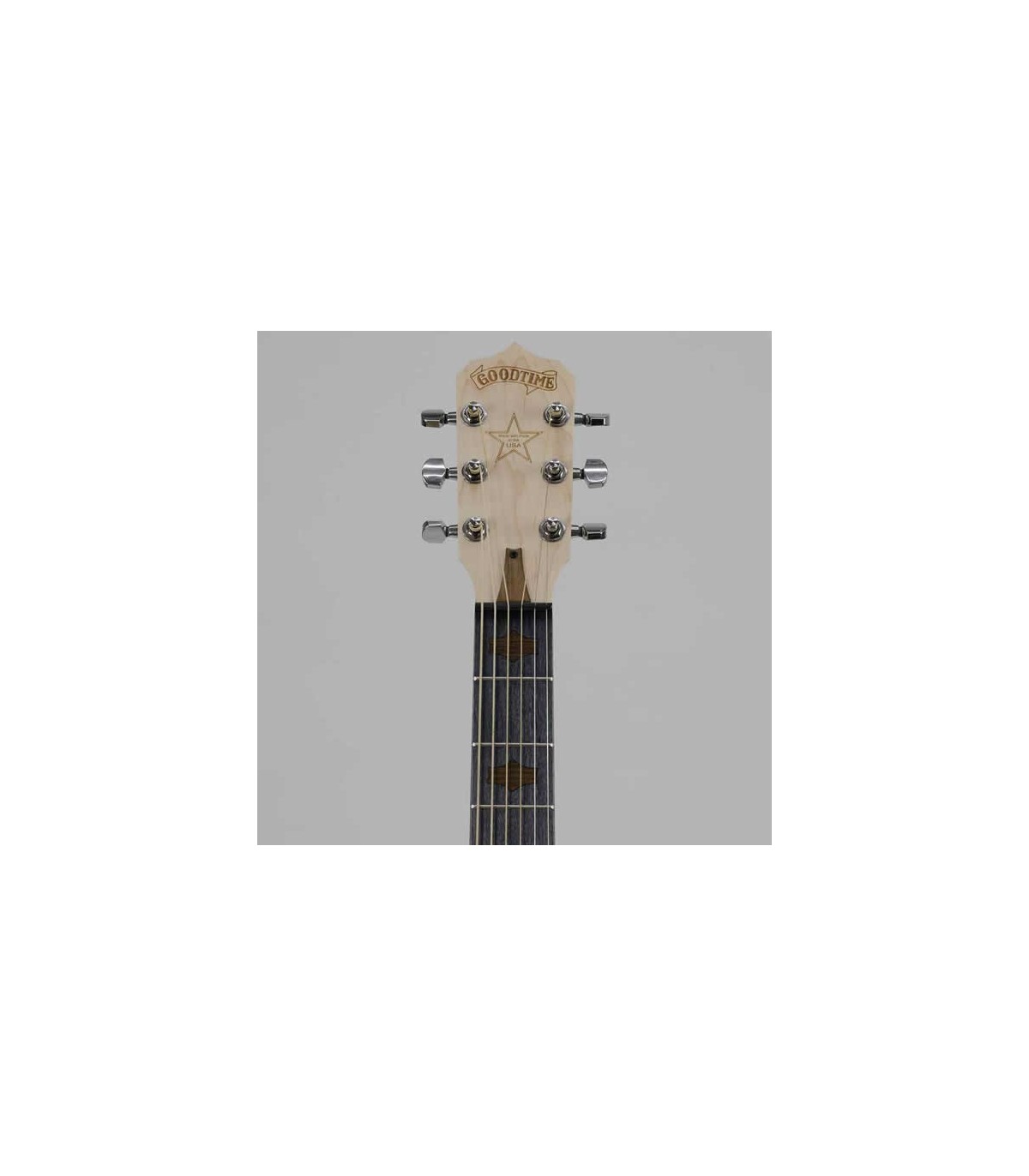 Most notably, the Goodtime Six-R features a radiused midnight maple finger board, offering the player a striking contrast to the normal blonde of the hard rock maple neck.