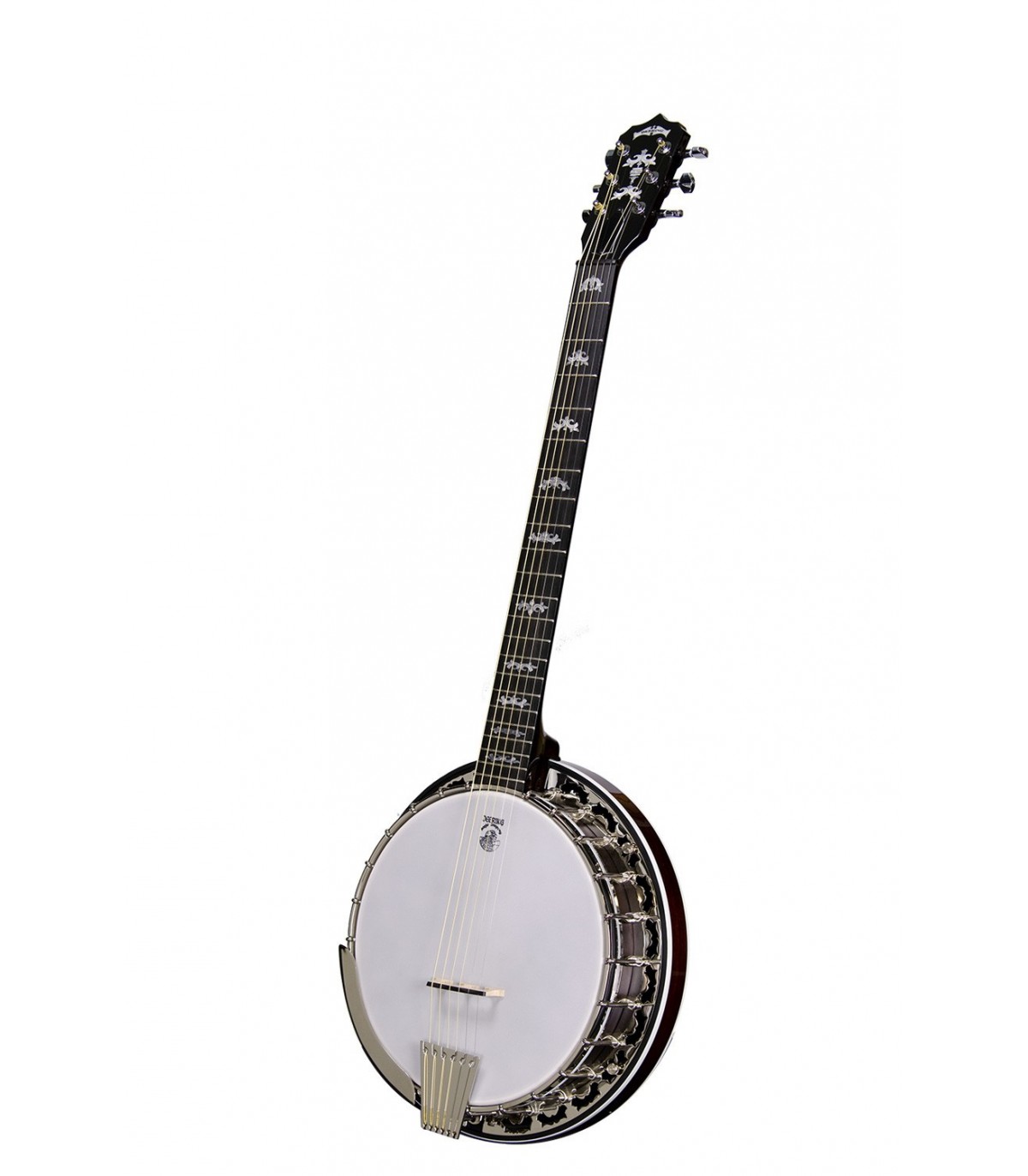 The lightest touch of the strings unleashes a dazzling blend of low and high frequencies with very rich mid-tones while more aggressive play is met with an equally driving tone. The Eagle II banjo is among the most versatile banjos available for all genres of music and now, in the new 6-string model, expectations of seeing it used by the thousands of existing world's guitar players are high.