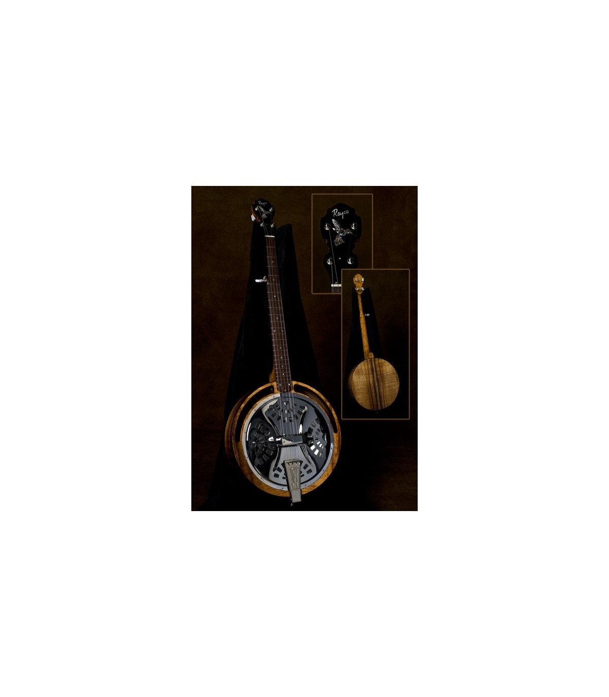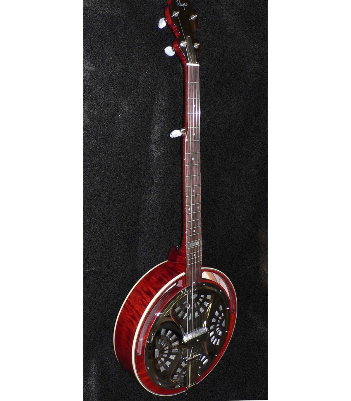 This "Banjonator" as I like to call it was born from an inspiration of mine to make a resophonic banjo that really cut it. Mark Thibeault of Rayco and I worked together in a band for six years and during that time we spent a lot of time perfecting the ResNick Though I know this not the first dobro banjo made, the ResNick is different. We have put a lot of time and thought into working out the problems inherent with putting a instrument like this together and getting the tone up to the standards that a pro could perform on stage with it. Rayco's dobro's are beautiful sounding instruments.